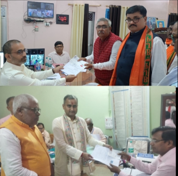विनोद नारायण झा और सुधांशु शेखर नामांकन करते
