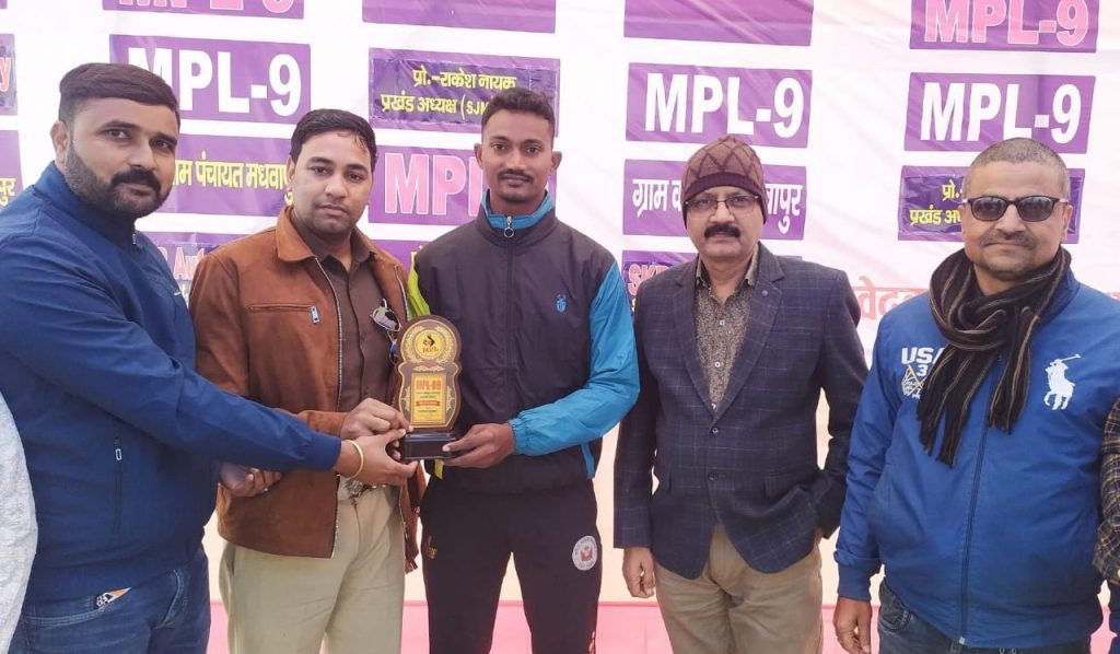 आरएनजे कॉलेज मैदान, रामपुर मधवापुर में खेले गए सीजन-9 के सातवें मुकाबले में एसएसबी जयनगर ने शानदार प्रदर्शन करते हुए लहेरियासराय (दरभंगा) को 128 रनों के विशाल अंतर से पराजित कर दिया। यह मुकाबला पूरी तरह एस एस बी जयनगर के नाम रहा।टॉस जीतकर पहले बल्लेबाजी करने उतरी SSB जयनगर की टीम ने निर्धारित 20 ओवर में 242 रन ठोक दिए।इस विस्फोटक पारी के हीरो रहे अशफाक, जिन्होंने सिर्फ 52 गेंदों पर 11 चौके और 10 गगनचुंबी छक्कों की मदद से 115 रनों की तूफानी पारी खेली।उनका बखूबी साथ निभाया प्रफुल्ल (38), अजय नायक (34) और कप्तान विवेक ओझा (21) रन बनाए ।लहेरियासराय की ओर से अभिषेक ने संघर्ष दिखाते हुए हैट्रिक सहित 3 विकेट झटके, जबकि राजन ने भी 3 बल्लेबाजों को पवेलियन भेजा।243 रनों के पहाड़ जैसे लक्ष्य के सामने लहेरियासराय (दरभंगा) की पूरी टीम 16.3 ओवर में 114 रन पर सिमट गई।अनमोल (31), अभिषेक (24) और रोहन (15) के अलावा कोई बल्लेबाज टिक नहीं सका।SSB जयनगर की घातक गेंदबाजी के आगे दरभंगा की बल्लेबाजी बिखर गई।अमन ने 4 विकेट, प्रफुल्ल ने 3 विकेट झटकते हुए मैच का रुख पूरी तरह बदल दिया।अपने शानदार शतक के लिए अशफाक (115 रन) को मैन ऑफ द मैच चुना गया।पुरस्कार वितरण समारोह में हर्ष राज (थानाध्यक्ष, मधवापुर), सुनील कुमार (अंचलाधिकारी), बसंत कुमार झा (एसआई), दीपक सिंह (उपप्रमुख) सहित आयोजन समिति के सदस्यों ने अशफाक को ट्रॉफी देकर उत्साहवर्धन किया।