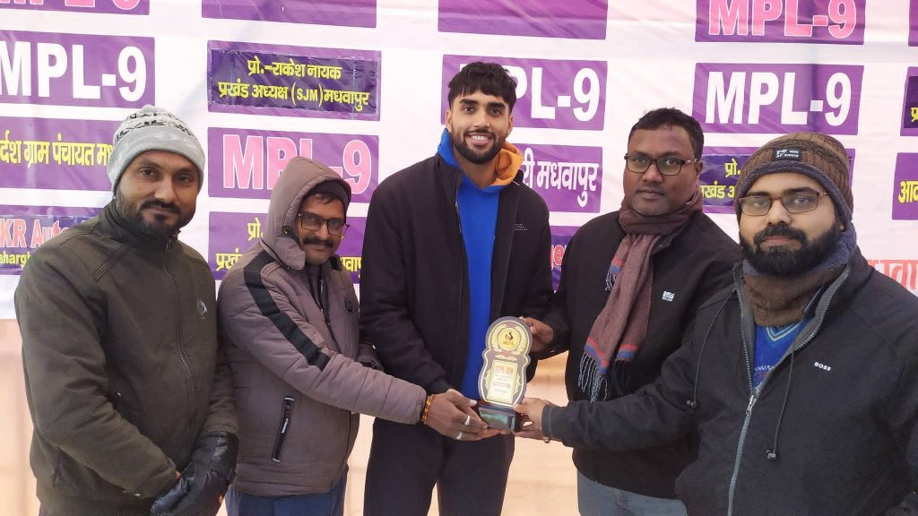 एमपीएल सीजन 9 के सुपर-12 चरण के चौथे मुकाबले में अजय-11 बैरिया (नेपाल) ने दमदार खेल का प्रदर्शन करते हुए पुपरी (सीतामढ़ी) को 47 रनों से पराजित कर सुपर सिक्स में प्रवेश करने वाली चौथी टीम बनने का गौरव हासिल किया।स्थानीय आरएनजे कॉलेज मैदान, रामपुर, मधवापुर में खेले गए मुकाबले में टॉस जीतकर अजय-11 ने पहले बल्लेबाजी करने का फैसला किया और 20 ओवर में 6 विकेट के नुकसान पर 157 रनों का मजबूत स्कोर खड़ा किया।राहुल रेमंड ने 47 रनों की शानदार पारी खेली, वहीं राहुल किशोर (38 रन) और त्रिपुरारी नवाद (30 रन) ने टीम की पारी को मजबूती दी। ऋषभ ने 19 रनों का उपयोगी योगदान दिया।पुपरी की ओर से गेंदबाजी में मोनू और सुनील ने 2-2 विकेट झटके, जबकि हर्षित को 1 सफलता मिली।158 रनों के लक्ष्य का पीछा करने उतरी पुपरी की टीम 18.2 ओवर में 110 रन बनाकर ऑलआउट हो गई।सोनू (32 रन) और बमबम (31 रन) ने संघर्ष जरूर किया, लेकिन बाकी बल्लेबाज अजय-11 की घातक गेंदबाजी के सामने टिक नहीं सके।अजय-11 की ओर से गेंदबाजी में आदित्य ने 3 विकेट, राहुल किशोर ने 2 विकेट झटके, जबकि मनीष, त्रिपुरारी और जॉन्टी को 1-1 सफलता मिली।हरफनमौला प्रदर्शन के लिए राहुल किशोर (38 रन व 2 विकेट) को मैन ऑफ द मैच चुना गया।