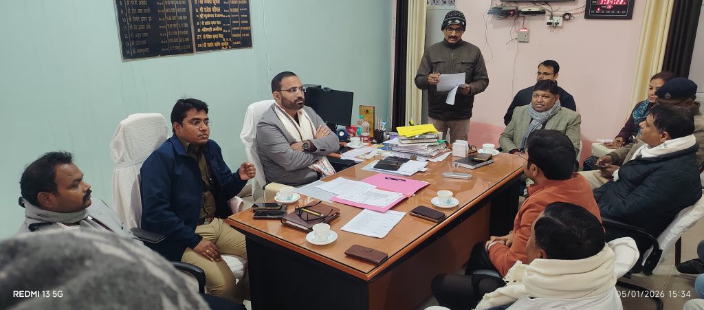 अनुमंडल पदाधिकारी बेनीपट्टी के कार्यालय प्रकोष्ठ में सोमवार को गणतंत्र दिवस समारोह 2026 मनाए जाने के संबंध में एसडीओ बेनीपट्टी शारंग पाणि पाण्डेय की अध्यक्षता में बैठक आहूत की गई। सर्वसम्मति से निर्णय लिया गया कि गणतंत्र दिवस समारोह-2026 धूमधाम से मनाया जायेगा। मुख्य समारोह श्री लीलाधर उच्च विद्यालय बेनीपट्टी के प्रांगण में आयोजित की जाएगी जहां अनुमंडल पदाधिकारी बेनीपट्टी के द्वारा सार्वजनिक झंडोत्तोलन किया जायेगा। पूर्व की भांति स्थानीय नीजी तथा सरकारी विद्यालय के बच्चे अपने विद्यालय के बैनर के साथ समारोह स्थल पर उपस्थित रहेंगे। समारोह में स्काउट गाइड के बच्चों के साथ-साथ अन्य इच्छुक नीजी तथा सरकारी विद्यालय के बच्चों के द्वारा मार्च पास्ट किया जाएगा। जिसकी निगरानी एवं अनुश्रवण की जिम्मेवारी पुलिस निरीक्षक बेनीपट्टी अंचल को सर्वसम्मति से सौंपी गई। इसके बाद इच्छुक नीजी तथा सरकारी विद्यालय एवं विभिन्न संस्थान की ओर से झांकी प्रस्तुत किया जायेगा जिसकी तैयारी का अनुश्रवण कार्यपालक दंडाधिकारी बेनीपट्टी के द्वारा किया जायेगा। तीन सर्वश्रेष्ठ झांकी एवं भाग लेने बाले अन्य झांकी को भी प्रमाण पत्र देकर पुरस्कृत किया जायेगा। श्रेष्ठ झांकी के चयन हेतु तीन सदस्यीय निर्णायक मंडल का चयन सर्वसम्मति से किया गया जिसमें पुलिस निरीक्षक बेनीपट्टी अंचल, कार्यालय दंडाधिकारी बेनीपट्टी, प्रखंड विकास पदाधिकारी बेनीपट्टी को शामिल किया गया। मंच से राष्ट्रगान नॉलेज डेवलपमेंट किंडर गार्टेन एकेडमी बेनीपट्टी की छात्राओं के द्वारा एवं एस एस ज्ञानभारती स्कूल के छात्राओं के द्वारा झंडा गीत प्रस्तुत किया जायेगा। अनुमंडल पदाधिकारी बेनीपट्टी द्वारा सभी प्रखंड विकास पदाधिकारियों को निदेशित किया गया कि महादलित टोलों में झंडोत्तोलन की तैयारी की निगरानी उनके द्वारा किया जायेगा। थानाध्यक्ष बेनीपट्टी को गणतंत्र दिवस के दिन यातायात व्यवस्था को सुदृढ़ रखने की जिम्मेवारी सौंपी गई तथा नगर पंचायत बेनीपट्टी के कार्यपालक पदाधिकारी को निर्देशित किया गया कि समारोह दिन संपूर्ण बेनीपट्टी के सड़कों की साफ-सफाई तथा समारोह स्थल की साफ सफाई सुनिश्चित किया जाए। अनुमंडल पदाधिकारी द्वारा निर्देशित किया गया कि झंडोत्तोलन में नए झंडे का प्रयोग किया जाए, दागयुक्त एवं कटे-फटे झंडे का प्रयोग किसी भी परिस्थिति में नहीं किया जाए। सर्वसम्मति से निर्णय लिया गया कि गणतंत्र दिवस के दिन अपराह्न 1:00 बजे से श्री लीलाधर उच्च विद्यालय के प्रांगण में प्रेश एकादश और प्रशासन एकादश के बीच फैन्सी क्रिकेट मैच खेला जायेगा। बैठक में अनुमंडल पुलिस पदाधिकारी बेनीपट्टी अमित कुमार, कार्यपालक दंडाधिकारी शि