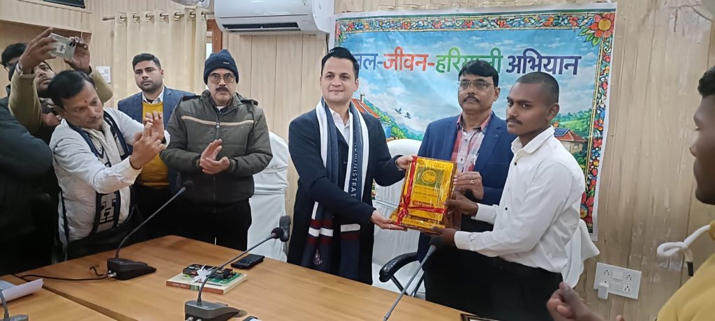 जल-जीवन-हरियाली जागरूकता अभियान के अन्तर्गत जिला स्तर पर आयोजित क्वीज प्रतियोगिता में प्रथम, द्वितीय एवं तृतीय स्थान प्राप्त करने वाले प्रतिभागियों को आज समाहरणालय स्थित सभाकक्ष में आयोजित एक सम्मान समारोह के दौरान जिलाधिकारी आनंद शर्मा द्वारा सम्मानित किया गया। इस अवसर पर चयनित प्रतिभागियों को प्रतीक चिन्ह, प्रशस्ति पत्र, जलवायु संरक्षण से प्रेरित पुस्तकें, डायरी, कलम एवं प्रतीकात्मक चेक प्रदान कर उनका उत्साहवर्धन किया गया।उक्त प्रतियोगिता में +2 उच्च विद्यालय उमगांव, हरलाखी के विवेक कुमार ने प्रथम स्थान, +2 उच्च विद्यालय भराम, झंझारपुर के जितेन्द्र कुमार ने द्वितीय स्थान तथा +2 उच्च विद्यालय जितवारपुर, रहिका के आशीष कुमार झा ने तृतीय स्थान प्राप्त कर जिले का गौरव बढ़ाया।विदित हो कि जल-जीवन-हरियाली जागरूकता अभियान के अन्तर्गत जिला स्तरीय क्वीज प्रतियोगिता का आयोजन दिनांक 20.12.2025 को किया गया था। इस प्रतियोगिता के माध्यम से विद्यार्थियों में जल संरक्षण, पर्यावरण संतुलन, तालाबों एवं जल स्रोतों के संरक्षण के प्रति जागरूकता उत्पन्न करना उद्देश्य था। नियमानुसार जिला स्तर पर चयनित प्रतिभागियों के बीच राज्य स्तरीय क्वीज प्रतियोगिता आयोजित कर राज्य स्तर पर प्रथम, द्वितीय एवं तृतीय स्थान प्राप्त करने वाले प्रतिभागियों को राज्य स्तरीय जल-जीवन-हरियाली कार्यक्रम में सम्मानित किया जाना था।हालांकि, अत्यधिक ठंड एवं अपरिहार्य कारणों के चलते राज्य स्तर पर प्रस्तावित क्वीज प्रतियोगिता को फिलहाल स्थगित कर दिया गया है। इसके बावजूद जिला प्रशासन द्वारा जिला स्तर पर चयनित प्रतिभागियों को सम्मानित कर उनके योगदान को सराहा गया।सम्मान समारोह के दौरान जिलाधिकारी ने तीनों चयनित प्रतिभागियों से उनके गांव एवं पंचायत क्षेत्र में स्थित तालाबों की वर्तमान स्थिति, साफ-सफाई एवं संरक्षण से संबंधित जानकारी प्राप्त की। तत्पश्चात जिलाधिकारी ने उन्हें अपने-अपने पंचायतों में तालाबों की नियमित साफ-सफाई, जल स्रोतों के संरक्षण तथा सार्वजनिक स्थलों पर गंदगी फैलाने वालों को रोक-टोक कर जागरूक करने की जिम्मेदारी सौंपी।जिलाधिकारी ने अपने संबोधन में कहा कि बच्चों एवं युवाओं की पहल समाज में सकारात्मक परिवर्तन लाने में महत्वपूर्ण भूमिका निभाती है। जब बच्चे स्वयं गंदगी फैलाने वालों को टोकते हैं, तो लोग अपनी आदतों में सुधार करते हैं। उन्होंने कहा कि जल-जीवन-हरियाली अभियान को जन-आंदोलन बनाने के लिए छात्र-छात्राओं की सक्रिय भागीदारी अत्यंत आवश्यक है।उक्त अवसर पर डीडीसी सुमन प्रसाद साह,डीपीआरओ परिमल कुमार,निर्देशक डीआरडीए,ओएसडी नितेश पाठक सहित कई अधिकारी उपस्थित थे।